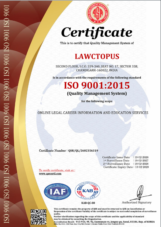 We are glad to share that Lawctopus is now ISO 9001:2015 certified for its Quality Management System in delivering online legal career information and education services. See the certificate here.
